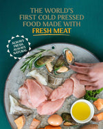 A grain free & natural cold-pressed complete dog food with fresh salmon, green lipped mussel and joint care, specially developed for adult dogs.