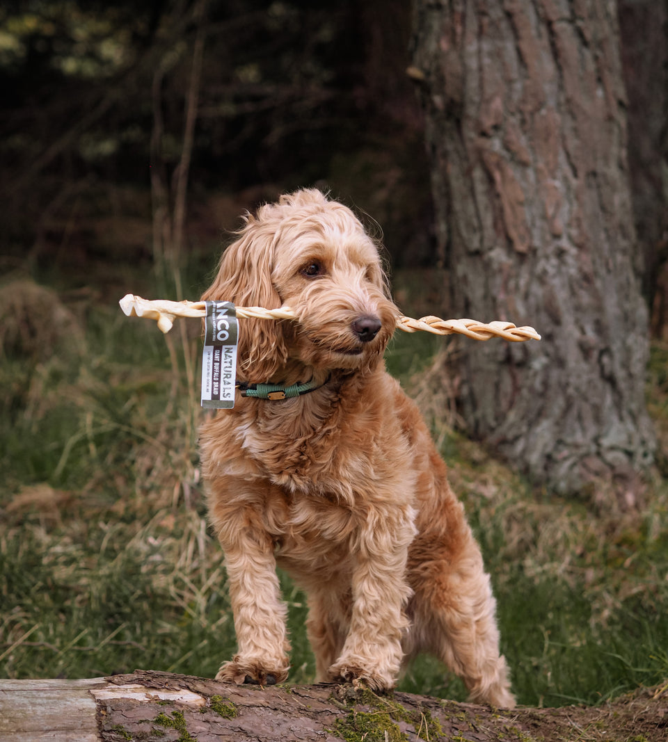 A Giant Braid that's naturally high in protein and low in fat? What more could your dog wish for! Especially if they already know and love our smaller braids - Giant braids offer a longer lasting option. Protein is an essential part of your dog's diet, chewing on a Giant Buffalo Braid could be the perfect way to sneak some added protein in! While the low fat content keeps the treat healthy and suitable for those on a low fat diet. Chewing is great for stimulating the dog's brain and keeping them happy, chewing releases endorphins in dogs- the feel good hormones - so allow your dog to please it's natural chewing instincts and sink their teeth into these Giant Buffalo Braids. *Approximately 40-50cm*