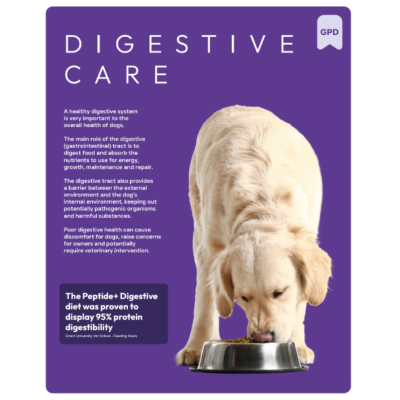 A healthy digestive system is very important to the overall health of dogs. The main role of the digestive (gastrointestinal) tract is to digest food and absorb the nutrients to use for energy, growth, maintenance and repair. The digestive tract also provides a barrier between the external environment and the dog’s internal environment, keeping out potentially pathogenic organisms and harmful substances. Poor digestive health can cause discomfort for dogs, raise concerns for owners and potentially require veterinary intervention.