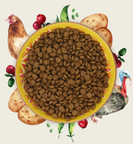 70% Turkey & Chicken (Including 36% Dried Chicken, 30% Freshly Prepared Turkey, 4% Turkey Fat), Potato 11.5%, Peas 5.5%, Lentils 3.5%, Chickpea 3.5%, Liver Gravy, Salmon Oil, Cellulose (1%), Minerals, Vitamins, Fructooligosaccharides (480 mg/kg), Mannanoligosaccharides (120 mg/kg), Dried Cranberry 0.01% Yucca Extract.