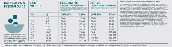 All dogs are individuals, and feeding guides are meant to be used as an initial recommendation. Monitor your dog’s body condition and adjust feeding amounts accordingly.