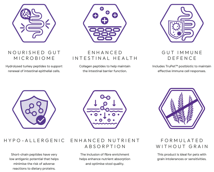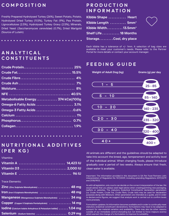 Freshly Prepared Hydrolysed Turkey (26%), Sweet Potato, Potato,