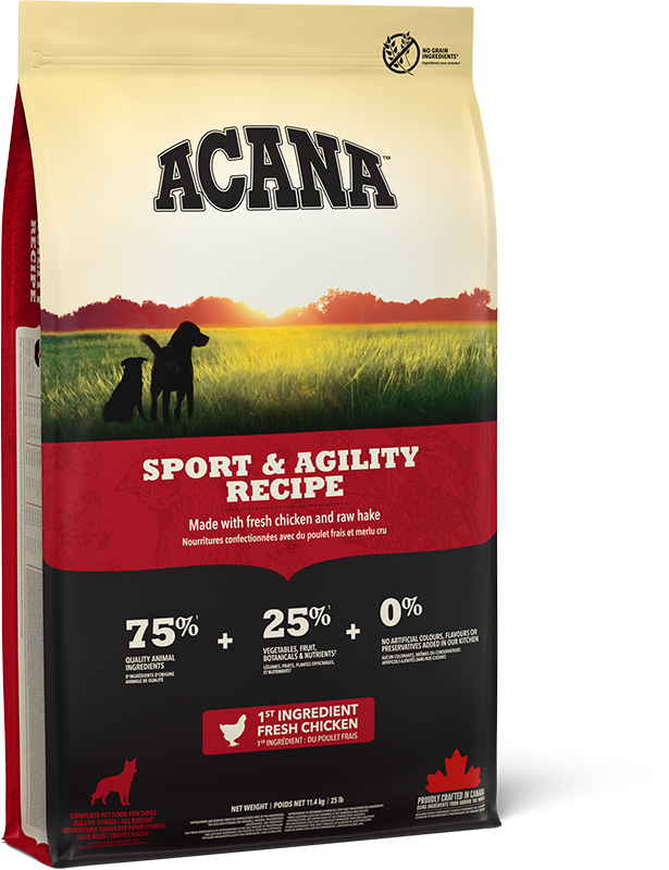 ACANA Sport & Agility is your canine companion's passport to peak performance, boasting a tantalising array of local ingredients meticulously sourced by trusted hands, certified "fit for human consumption", and whisked to our kitchens faster than you can say "fetch" each day! ACANA Heritage foods serve up a triumvirate of fresh meats in WholePrey™ ratios, ensuring your sporty sidekick receives a banquet of nutrients straight from the heart of the countryside. From free-run chicken, bursting with clucky goodness from local prairie farms, to nest-laid eggs as fresh as a dawn chorus, and wild flounder plucked from the chilly waters off North Vancouver Island, each ingredient is a testament to quality and dedication. So, if you want your furry athlete to leap and bound like a canine colossus, it's time to treat them to a taste of ACANA Sport & Agility – because every bark tells a tale of culinary prowess.