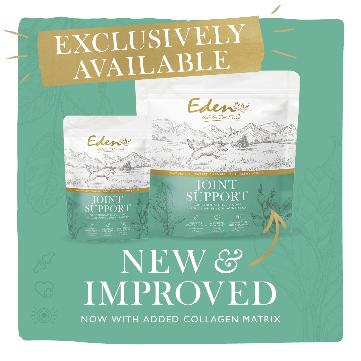 Our Joint Support is suitable for all life stages, because why wait until there’s a problem. Beginning use of our Joint Support as a puppy protects their long-term mobility and ensures they can keep up with the rest of the pack. Eden Joint Support provides a helping hand to senior and arthritic dogs as well as supporting recovery after an injury or operation. Offering general maintenance for every pet, to support their joints through daily walks and adventures. An innovative supplement for every lifestyle.