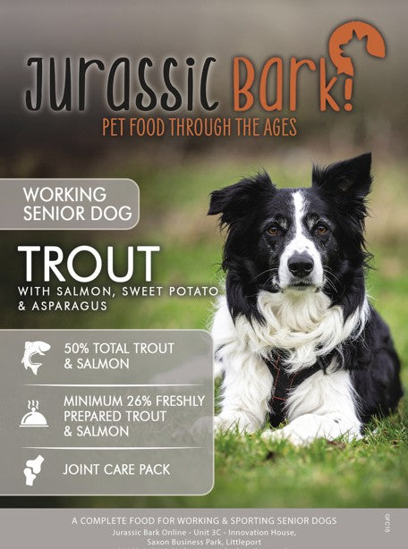 Jurassic Bark GF Senior Trout with Salmon, Sweet Potato & Asparagus Working Dog 15kg